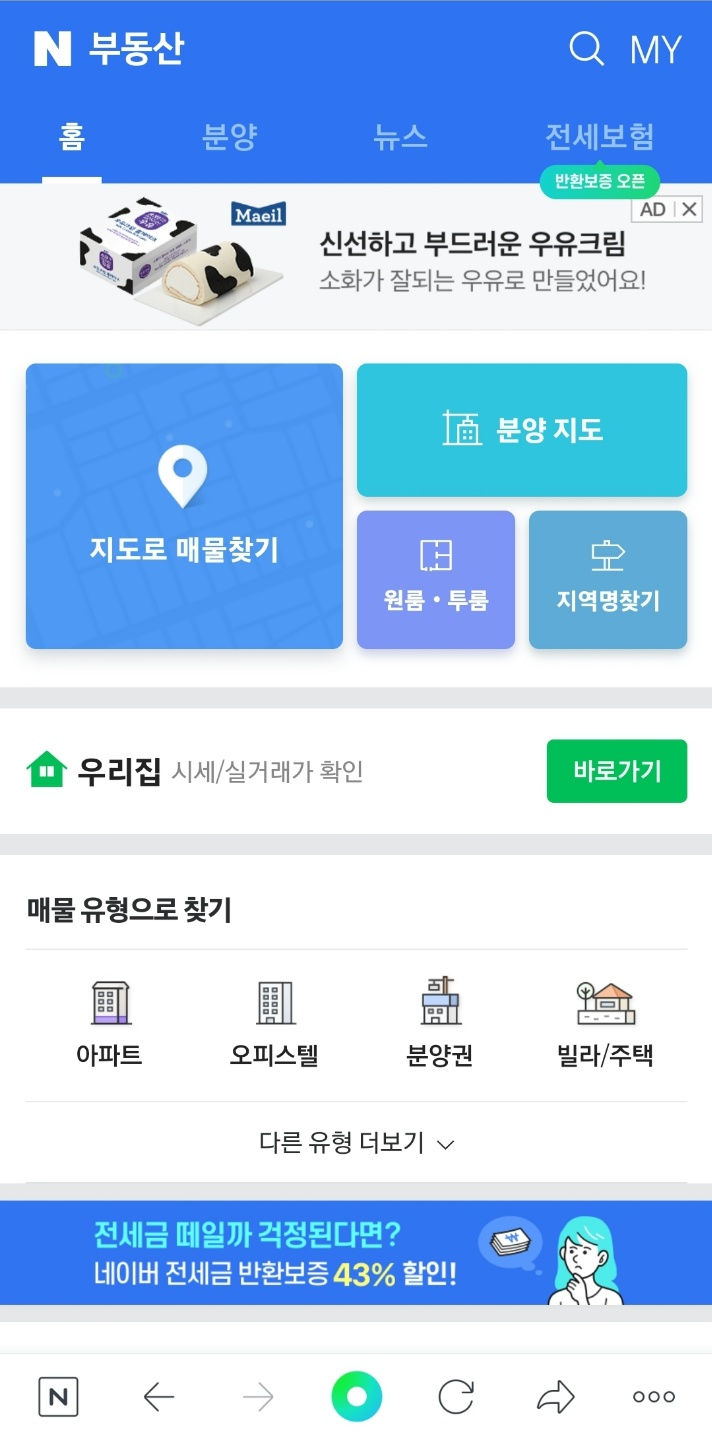 네이버부동산은 매물 호가를 알아볼때 많이 사용하고 있습니다.