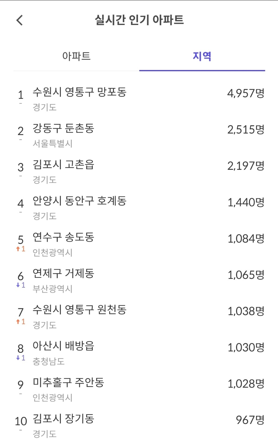 가장 강점은 실시간 인기아파트와 지역을 확인할수 있어서 어느 지역이 메인인지 아닌지 쉽게 파악할수 있습니다.