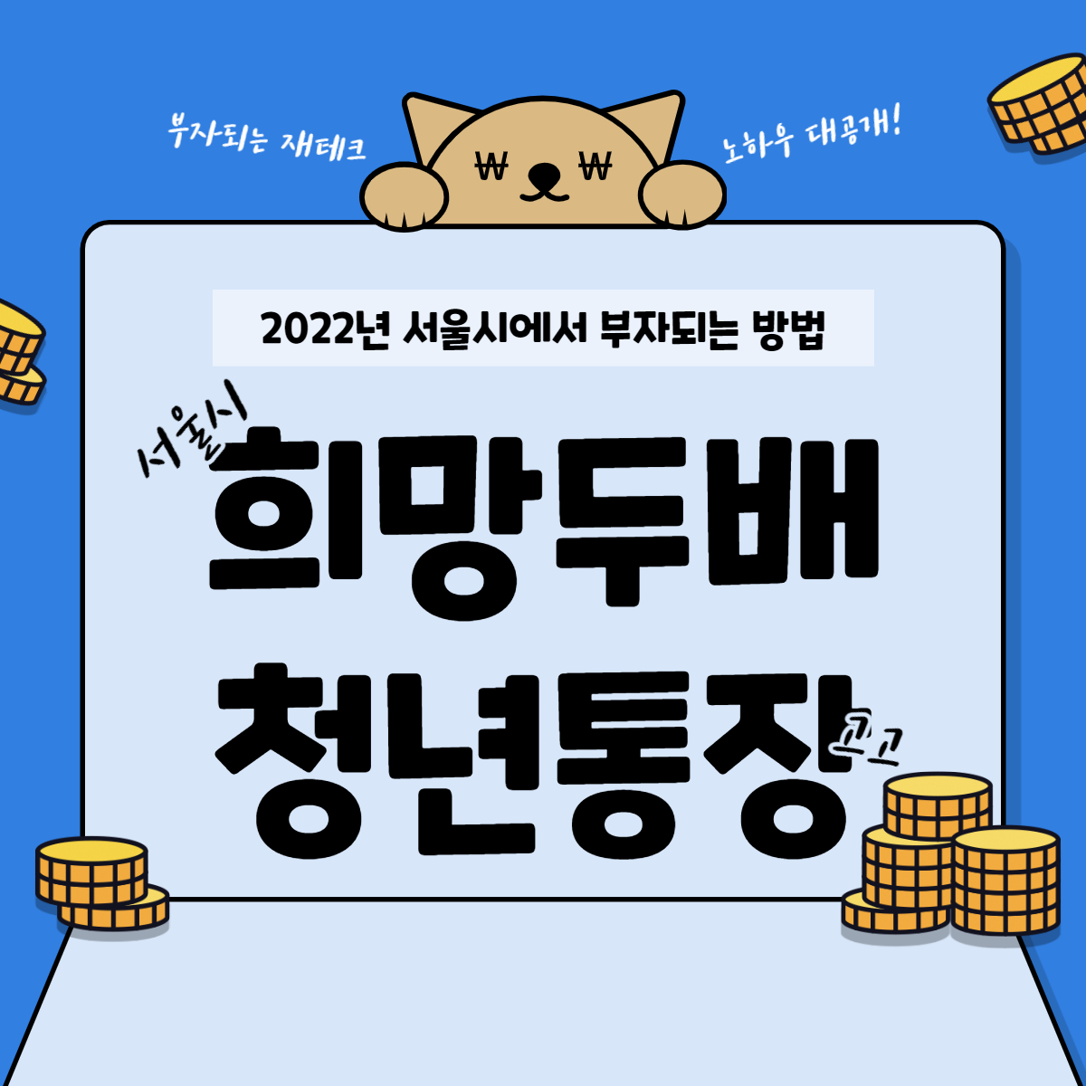 1. 희망두배 청년통장은 서울시에 거주하는 일하는 청년이 매달10만원, 15만원 중 선택하여 2~3년간 저축을 하면 저축액과 동일한 금액을 서울시와 민간후원금으로 적립, 지원하는 통장입니다.