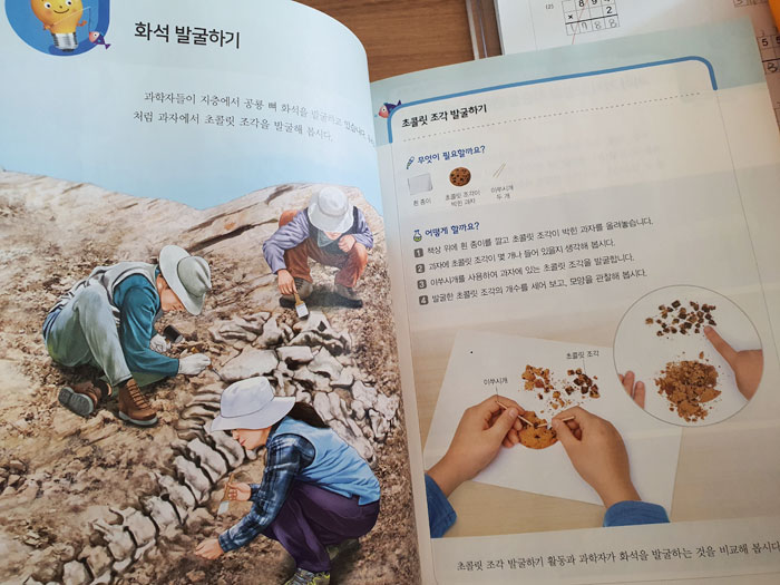지난주 4학년 과학수업중 화석발굴하는 내용이 있었습니다.